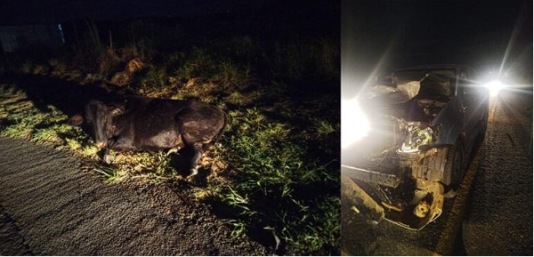 Palmas de Monte Alto: Gado solto provoca acidente com caminhonete na BR-030.