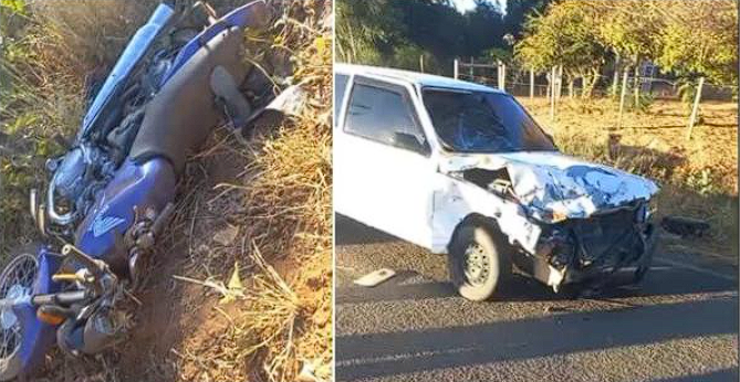 Palmas de Monte Alto: Motociclista fica ferido após invadir pista e colidir com carro na BA-263.