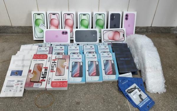 Polícia Rodoviária apreende celulares e peças de smartphones sem nota fiscal em ônibus em Guanambi.