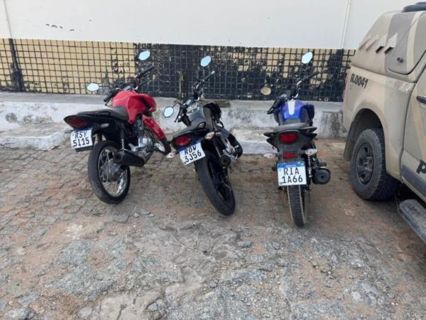 Dois homens e um adolescente são levados à delegacia após serem flagrados com motos clonadas em Guanambi.