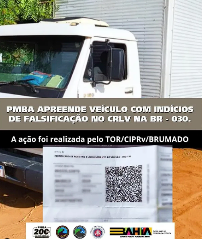 Um caminhão com indícios de falsificação foi apreendido por Policiais do Tático Ostensivo Rodoviário (TOR) da Companhia Independente de Policiamento Rodoviário (CIPRv – Brumado), na manhã de sexta-feira (02), em Caetité (BA). A apreensão ocorreu por volta das 11h30min, quando o veículo foi abordado em um trecho da BR-030. Na fiscalização o motorista apresentou um […]